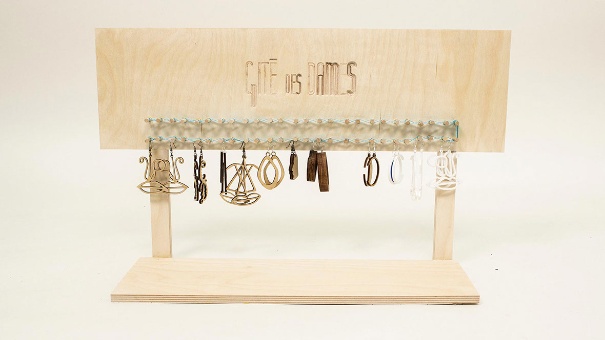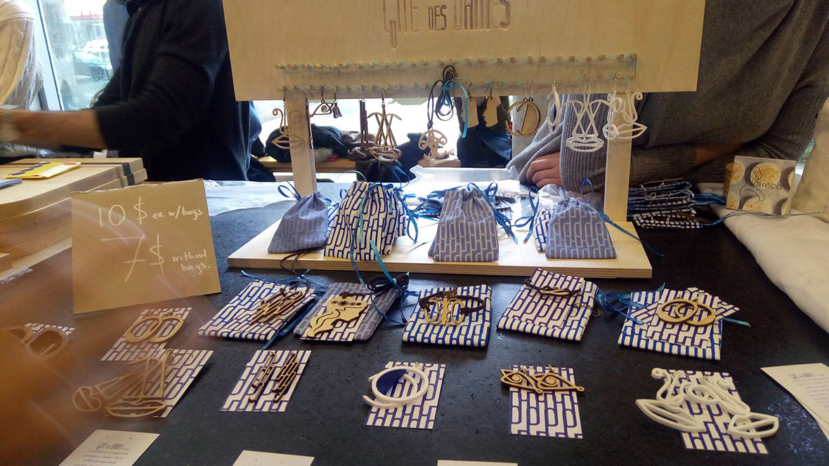 For the conception of the jewelry, We got inspiration from the non-profit organisation name, Chez Doris, and different women silhouette to represent the organization we were looking to support and our main clients.We tested different shapes and adapted to the different recycled materials we had available.