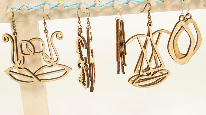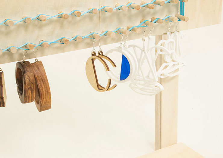 It terms of production, it was very important for us to create sustainable jewelry, hence we decided to create items with recycled wood and plexiglass taken from CUCCR, at Concordia University. Surprisingly enough, it was rather easy to gather enough materials for our project, and noticed people threw away materials which was sufficient enough for other uses/projects (of smaller sizes). All of the pieces were done through the laser cutter machine except for the thick pieces of maple wood which were done at the CNC machine.