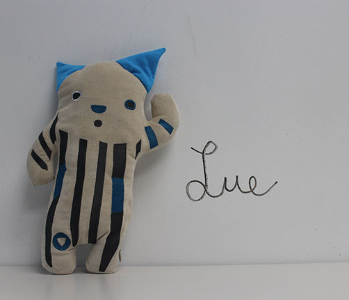 Lue features touch sensors on its back that responds when pet. With enough contact Lue calms down as it will and lights up its checks with affection. Lue has a pressure sensor within its arm, when its arm is held or swayed it lights up with excitement. Touch sensors on the front and a pressure sensor in the belly senses a hugging interaction.
