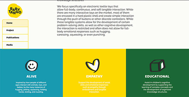 Baby Tango started as a desire from Joanna Berzowska, BFA (design & comp. arts) , an associate professor in Concordia’s Department of Design and Computational Arts and associate dean of research in the Faculty of Fine Arts.